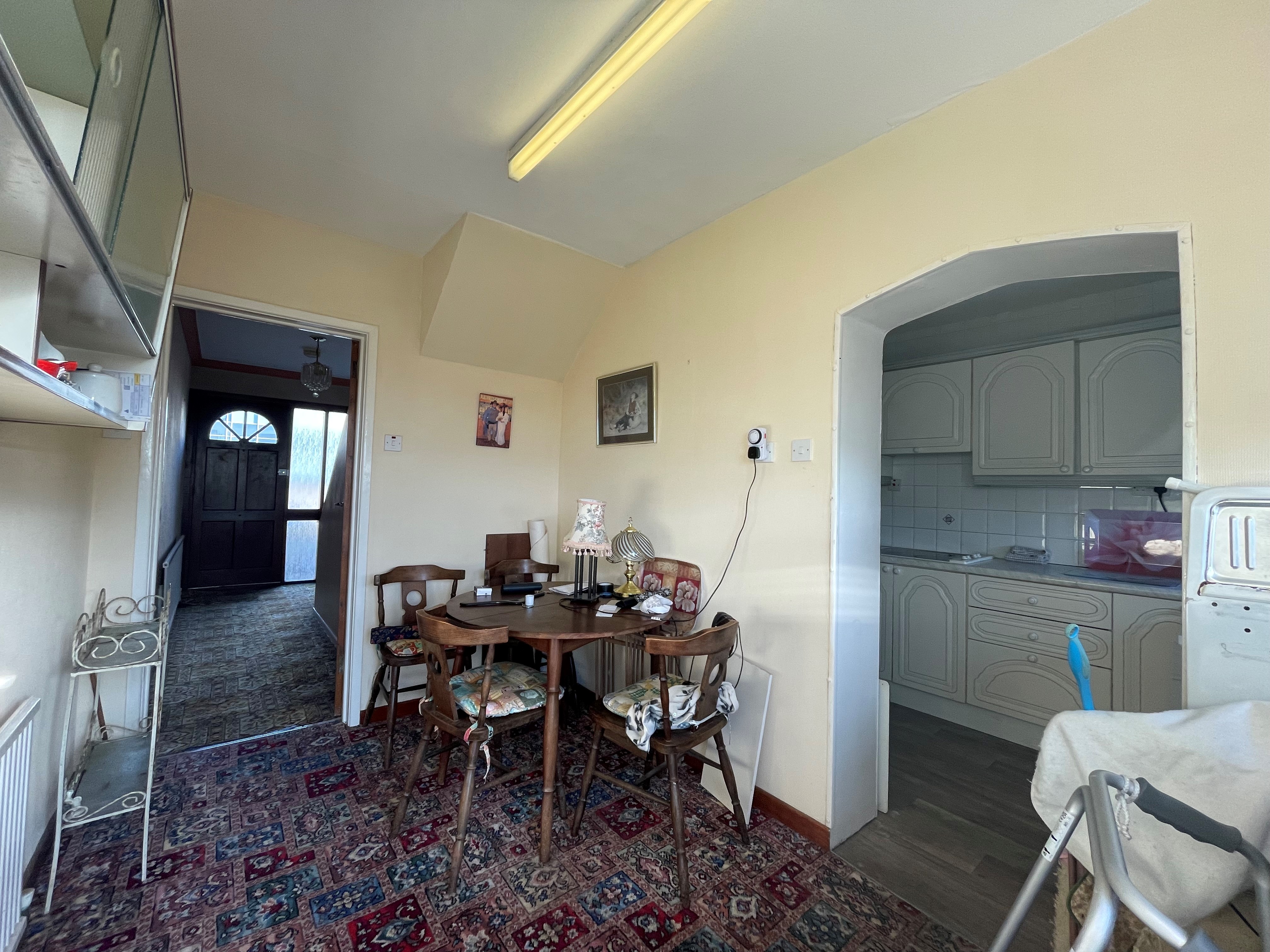 Inside, the home features a bright and welcoming entrance hall, a generous living room that with dining area and a kitchen with potential for expansion by incorporating the adjoining dining room. Upstairs, there are two good sized double bedrooms, a comfortable single bedroom, and a family bathroom with a three-piece suite.